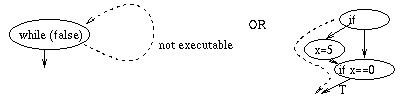 It is worth noting that even the MOP solution can be overly conservative (i.e., may include too much information for a "may" problem, and too little information for a "must" problem), because not all paths in the CFG are executable. For example, a program may include a predicate that always evaluates to false (e.g., a programmer may include a test as a debugging device -- if the program is correct, then the test will always fail, but if the program contains an error then the test might succeed, reporting that error). Another way that non-executable paths can arise is when two predicates on the path are not independent (e.g., whenever the first evaluates to true then so does the second). These situations are illustrated below.