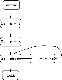 One question is whether, in general, our system of equations will have a unique solution. The answer is that, in the presence of loops, there may be multiple solutions. For example, consider the simple program whose CFG is given below: